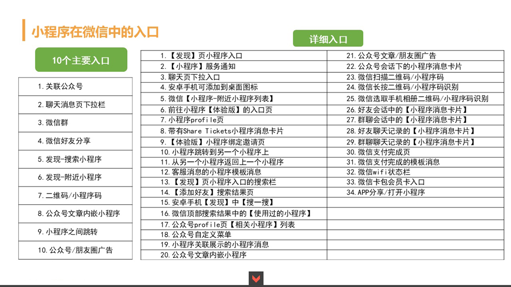 2)微信十大入口可以找到你(附近小程序、公眾號(hào)、圖文信息、搜索、二維碼、轉(zhuǎn)發(fā)、分享、卡券、支付、社交分享);